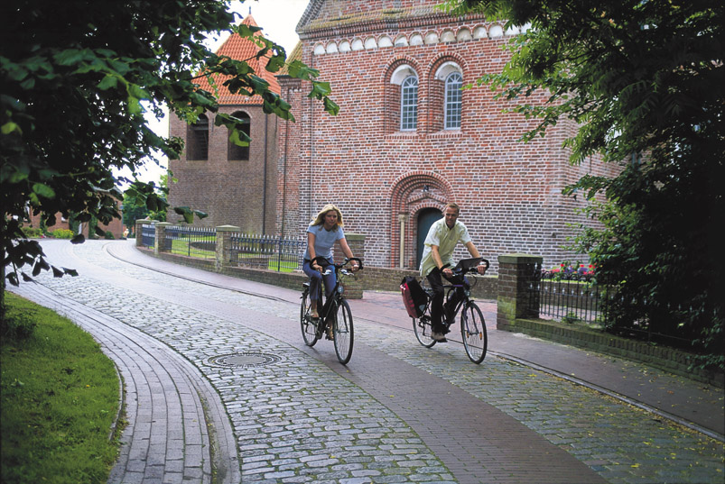Der Tag beginnt in Emden, wo Hafenrundfahrt, Kunsthalle, Landesmuseum oder das berühmte Otto-Huus für einen abwechslungsreichen Start sorgen. Anschließend führt die rund 46 Kilometer lange Mühlentour durch die idyllische Krummhörn. Erste Station ist die historische Mühle „Kost Winning“ in Larrelt, bevor es über Campen und Loquard mit ihren alten Kirchen und Museen weitergeht. In Rysum lädt die liebevoll restaurierte Windmühle von 1895 sowie das Landhaus Rysumer Plaats zur Pause ein. Danach führt die Route entlang der Küste zum imposanten Campener Leuchtturm – dem höchsten Deutschlands – mit beeindruckender Aussicht. Über Hamswehrum, Groothusen mit seiner Osterburg und Manslagt geht es schließlich nach Pilsum, wo die mittelalterliche Kreuzkirche den Abschluss dieser kulturreichen Etappe bildet.