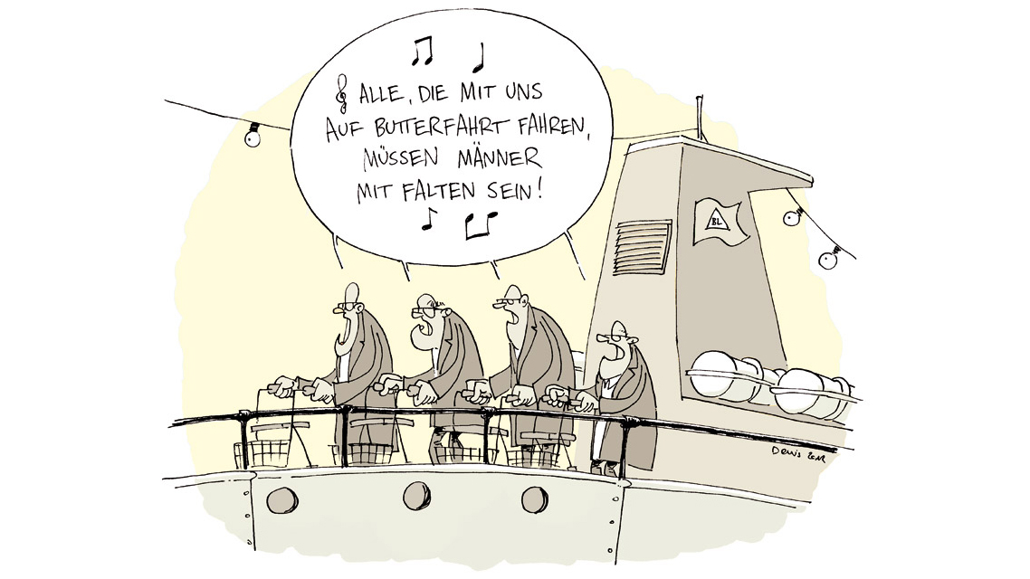 Für fünf Tage wird das Obergeschoss des Nationalpark-Hauses zur Altersresidenz für Künstler. Glücklicherweise können die teilnehmenden Cartoonistinnen und Cartoonisten trotz Gicht, Grauem Star, Nierensteinen und vorangallopierender Demenz so gerade noch den Stift halten, um ihre komischen Ideen rechtzeitig in lustige Bilder zu verwandeln, bevor sie sie wieder vergessen haben.