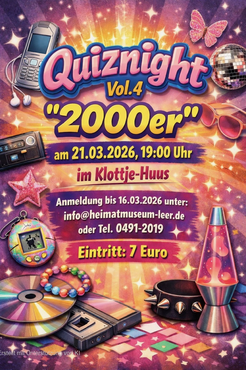 Eintritt 7,00 €Verbindliche Anmeldung bis zum 16. März 2026 unter info@heimatmuseum-leer.de oder Tel. 0491 / 2019.