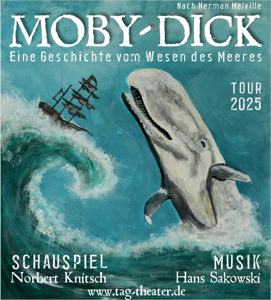 Der Schauspieler Norbert Knitsch spielt die abenteuerliche Geschichte in neuer dramatisierter Fassung und künstlerischer Vielseitigkeit in Begleitung mit dem Musiker Hans Sakowski, ganz im Stile ihrer bekannten anderen Stücke. Dieser Roman gehört zur Weltliteratur und dokumentiert zeitgleich das, was sich im Walfang auch heute noch abspielt.
